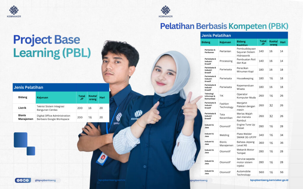 “Pelatihan ini terbuka bagi pencari kerja, pekerja yang ingin meningkatkan atau memperbarui keterampilannya (upskilling dan reskilling), korban PHK, serta calon wirausaha,” ujarnya.